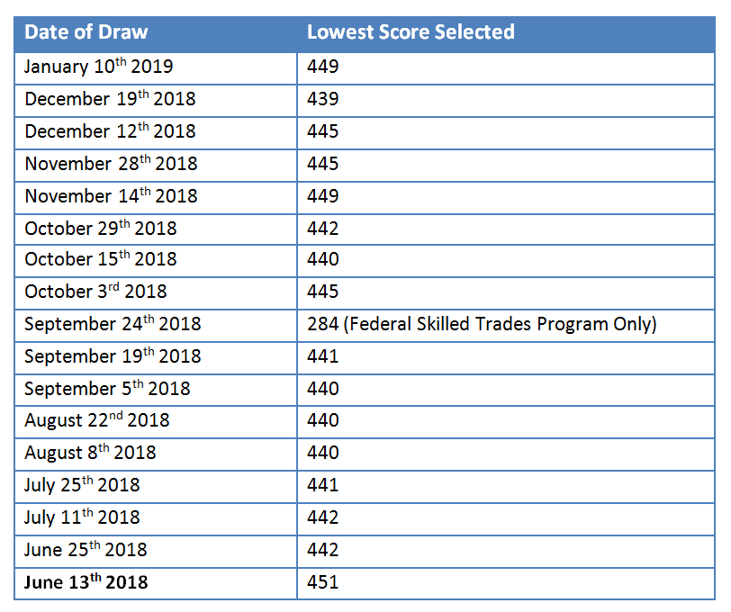 published on 11 January 2019 @ 4:41 pm · COMMENTdraw 2Next RELATED NEWSExpress Entry Draws – December 2025 – January 2026 Read More Ontario Bans “Canadian Work Experience” Requirement in Job Postings Read More